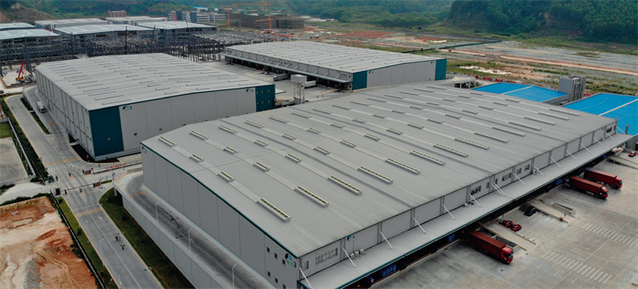 南京安博物流园项目流线型通风天窗(整体骨架式)为横肉,顺坡式布置于屋面的通风天窗窗型,尺寸一般较小,通常不超过 1200mm。产品骨架采用热镀锌钢板整体模压成型,骨架面板压制凹凸花纹[俗称加强筋|以提高其机械强度...